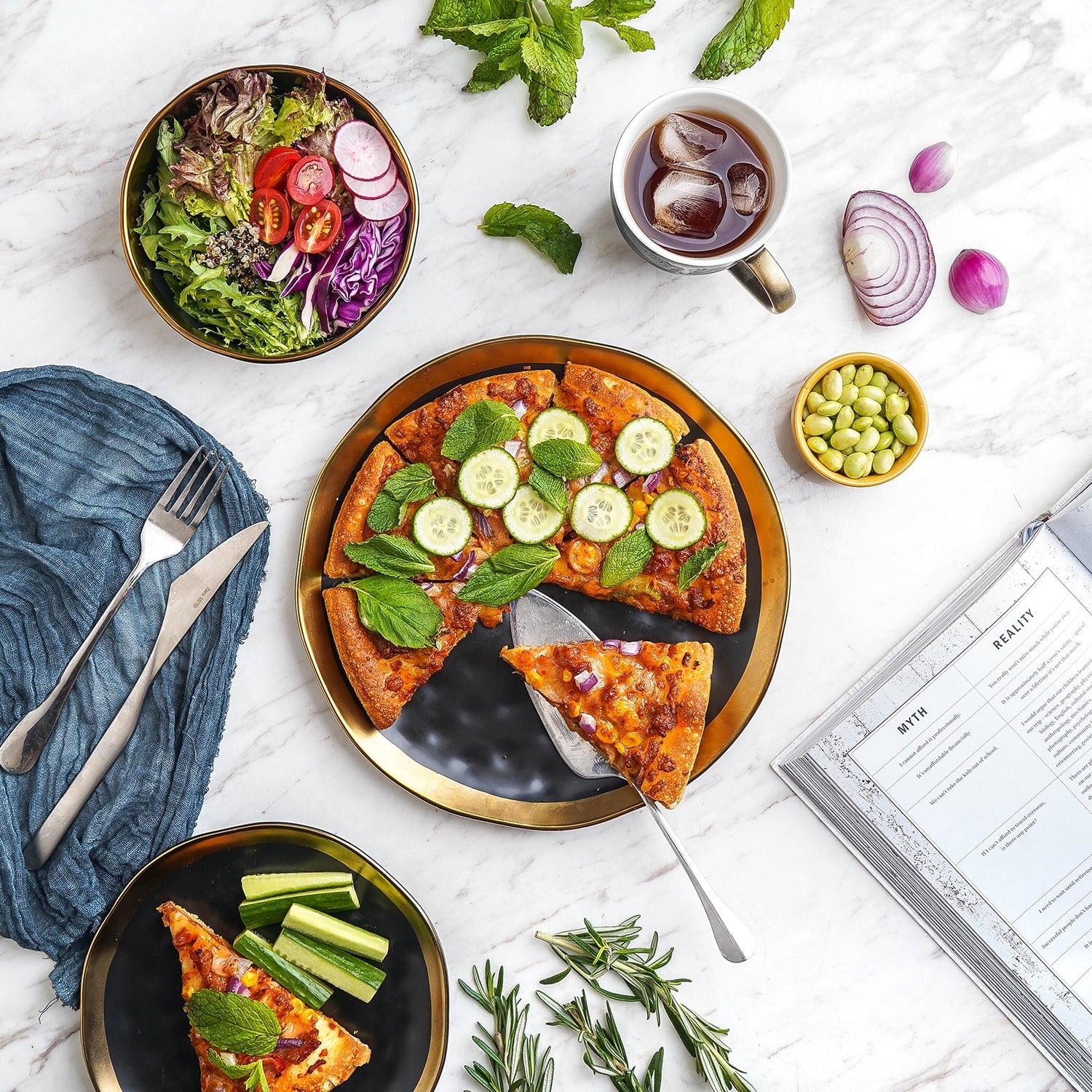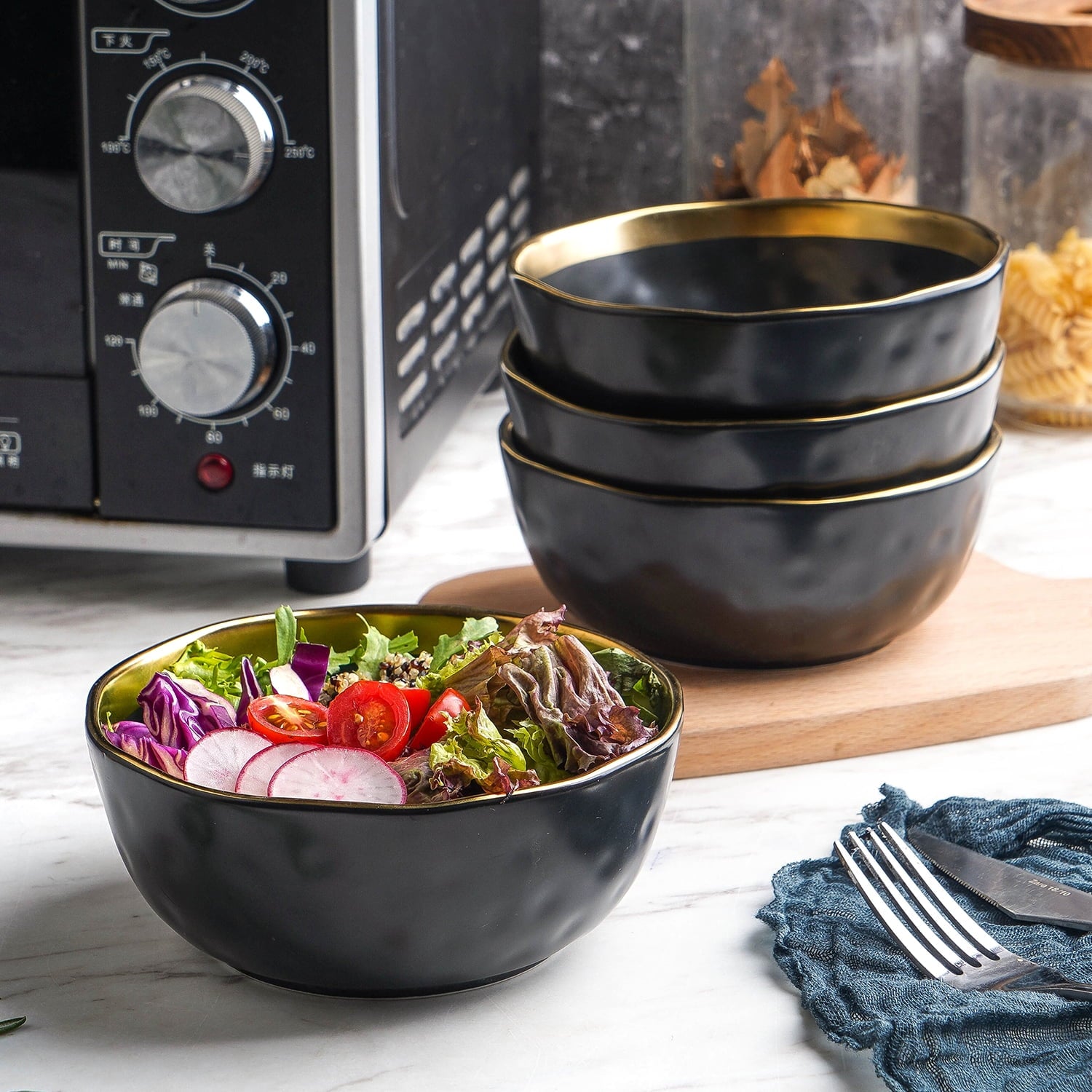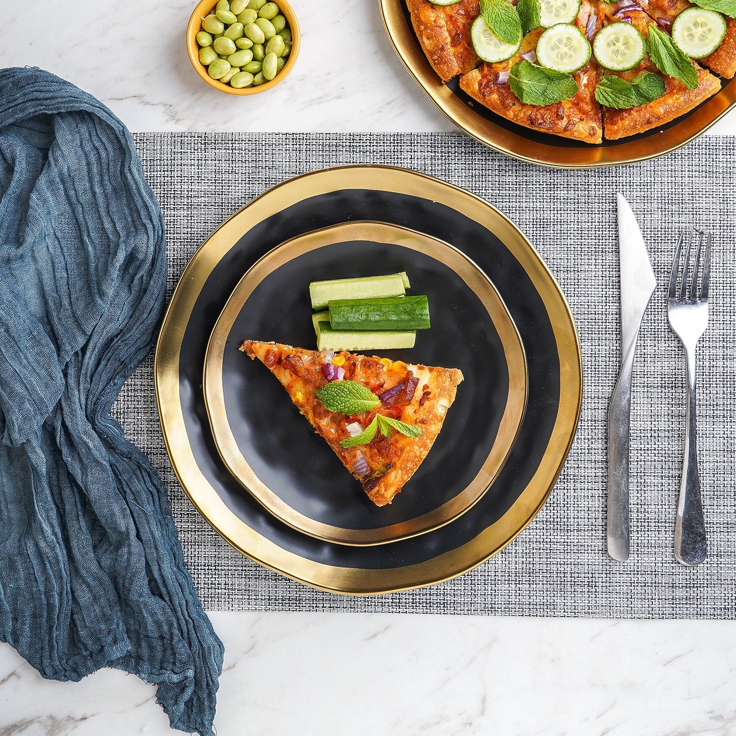 Modern Porcelain Dinnerware Set 16-Piece Gold and Black Dish Set for 4, Elegant Tableware for Daily Meals and Special Occasions